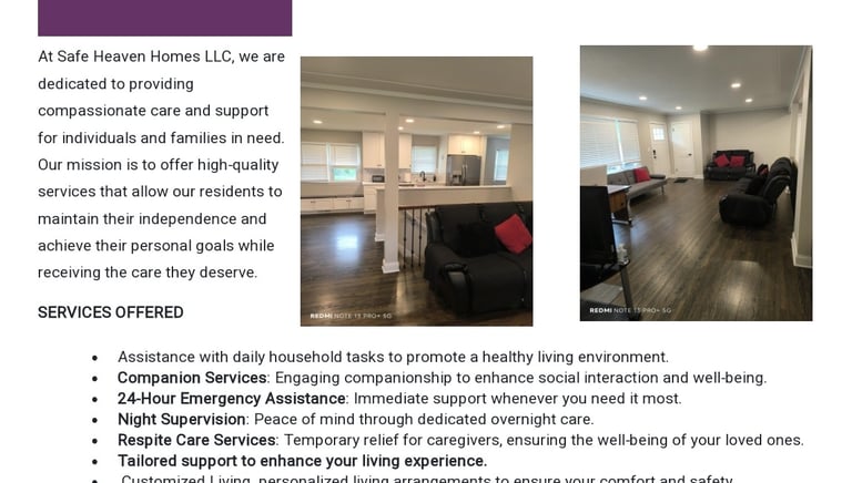 Safe Heaven Homes has been a blessing for my mother. The staff is caring and attentive.